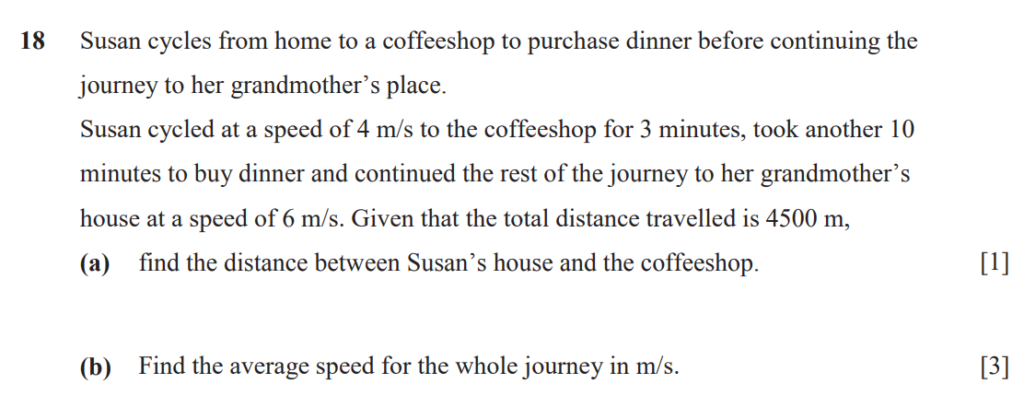 (a) Distance between Susan’s house and coffeeshop = 4m/s x (3×60)min = 720 m